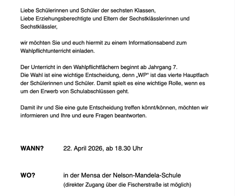 22.04.2026: WP-Infoabend für die sechsten Klassen
