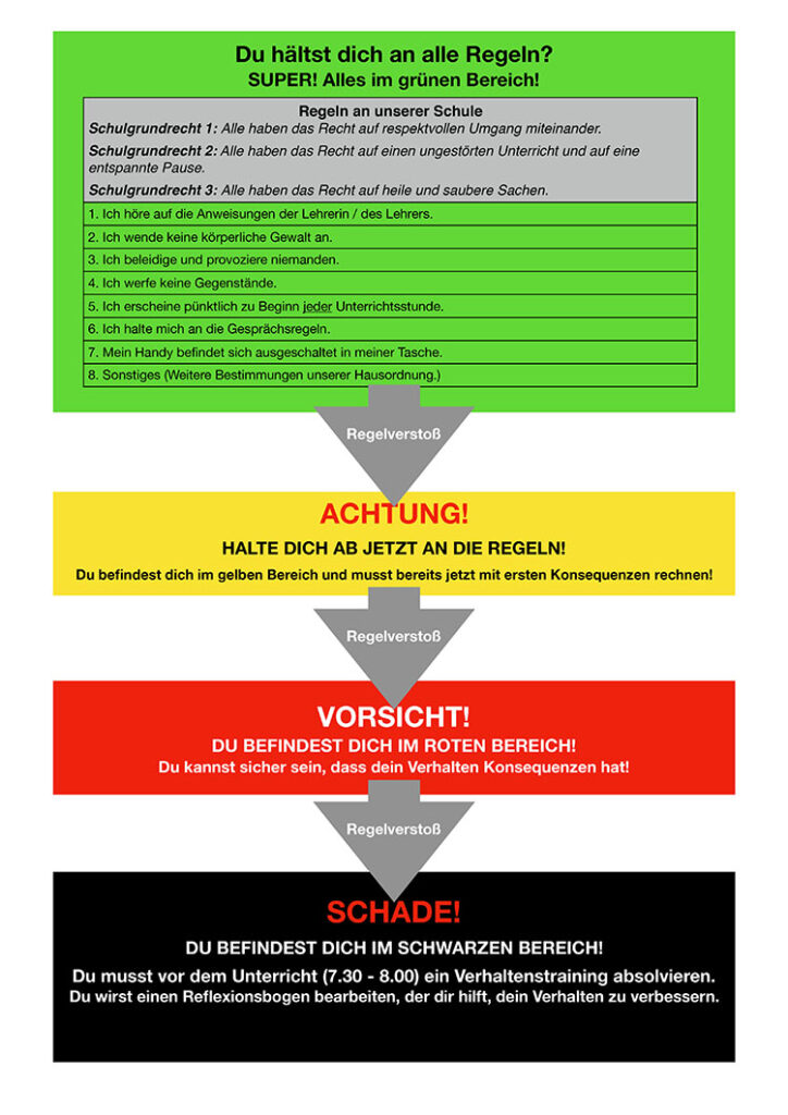 Du änderst dein Verhalten nicht: Du stehst auf Schwarz. Jetzt musst du einen Reflexionsbogen bearbeiten. Du bearbeitest den Bogen NICHT im Unterricht.