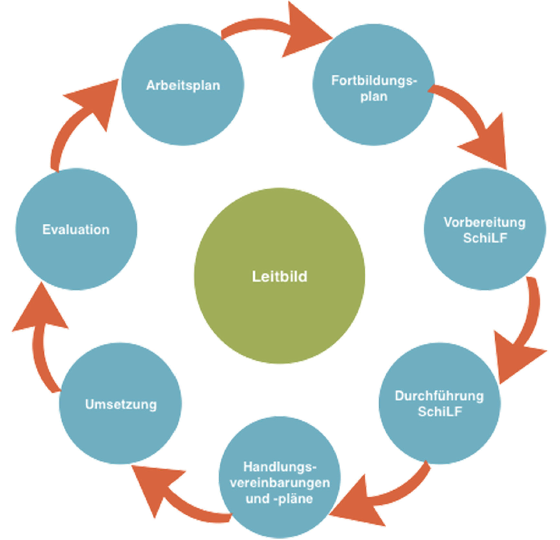 Aufgabe der Didaktischen Leitung ist es, schulinterne Fortbildungen durchzuführen und zu koordinieren. Regelmäßig wird das Schulprogramm und dessen Wirksamkeit evaluiert. Auf der Basis der Ergebnisse beschließt Im Anschluss an Fortbildungen kann das Schulprogramm weiterentwickelt werden. Von zentraler Bedeutung sind hier verbindliche Vereinbarungen aller am Schulentwicklungsprozess beteiligten Personen. das Kollegium den weiteren Fortbildungsbedarf.